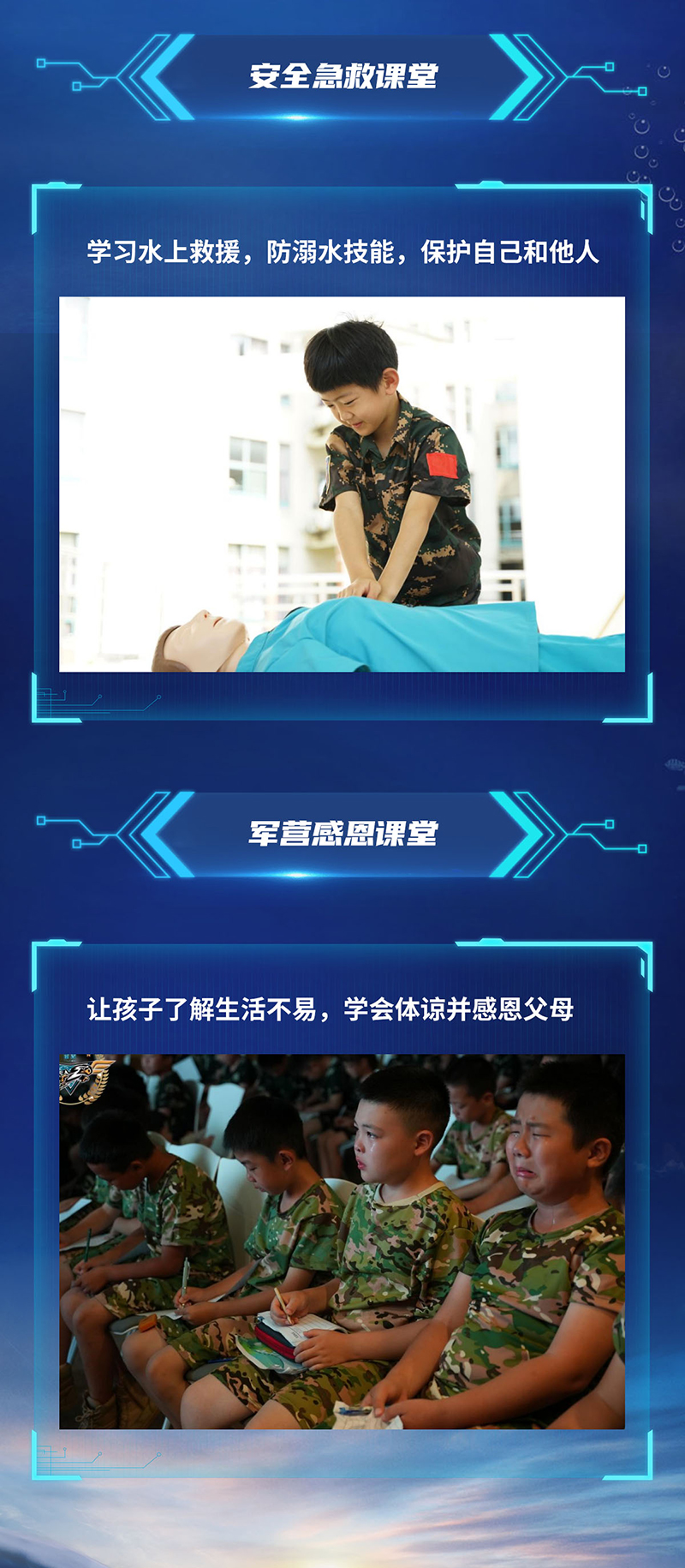 一是团队优势。教官团队退役后一直从事青少年素质教育,对孩子的管理和训练有独特的方法。