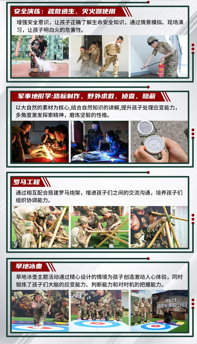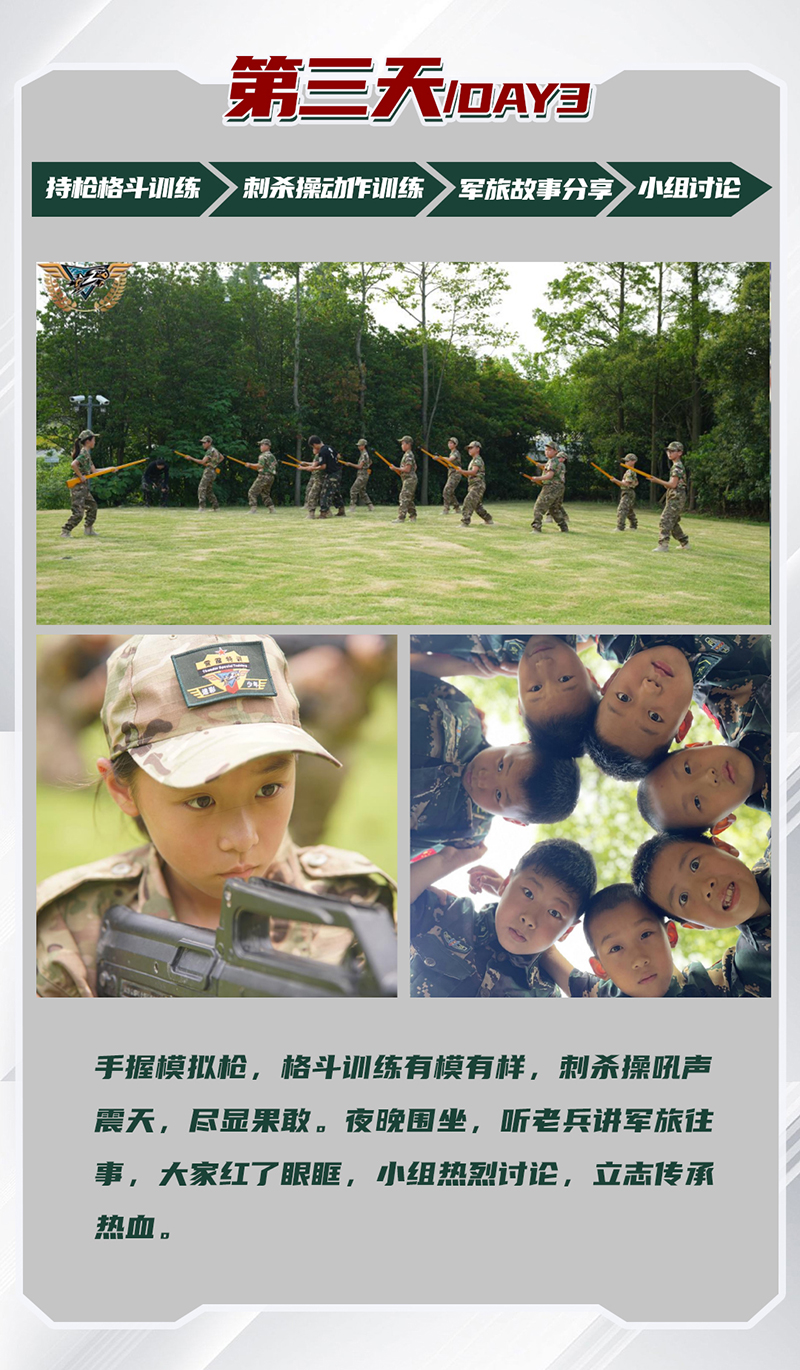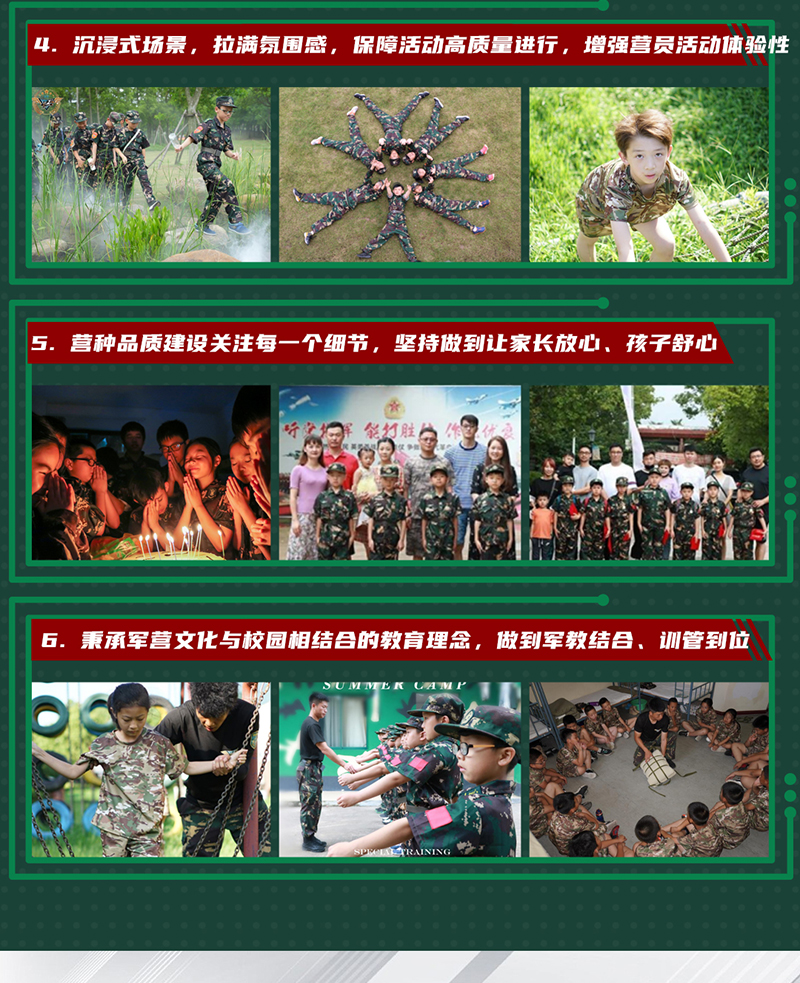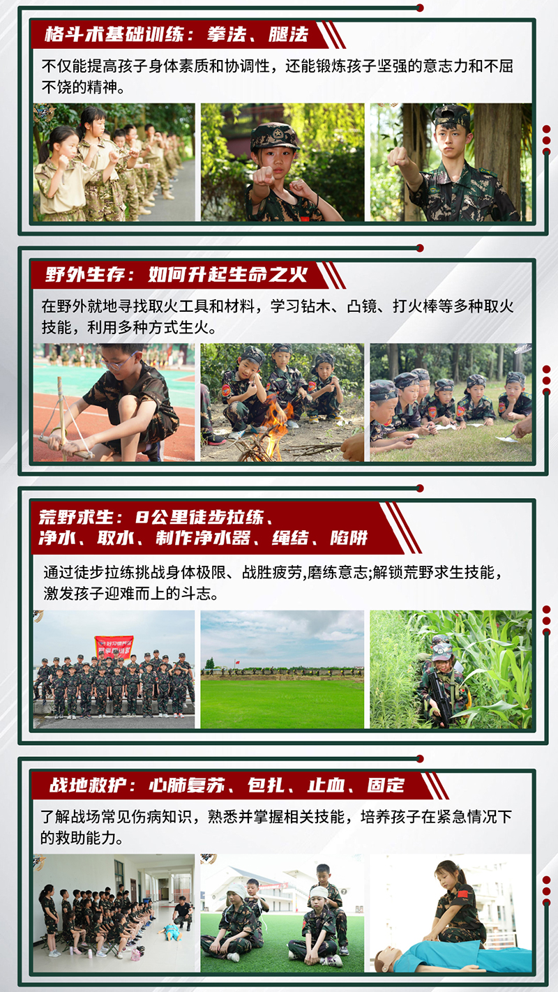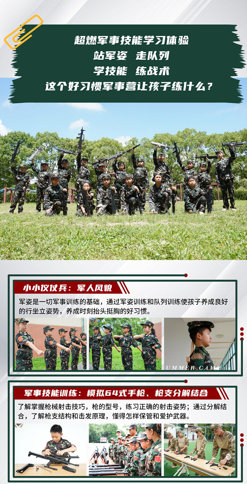行程特色:入营直接实现军旅梦,帮助孩子改善弯腰驼背等现象,养成昂首挺胸的好习惯